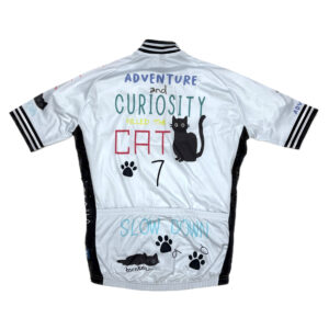 この春夏の7ITAを象徴するAdventure(冒険)とCuriosity(好奇心)をテーマとしたポップでカラフルなデザインが特徴のサイクルジャージです。 Curiosity killed the Catとは「好奇心がネコを殺す」=”深入りしてはダメよ”という格言です。が、それでもみなさまが自転車に乗って冒険に出かけられる事を強く信じてデザインしました。