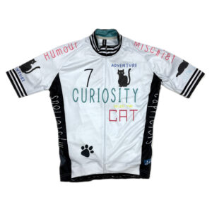 この春夏の7ITAを象徴するAdventure(冒険)とCuriosity(好奇心)をテーマとしたポップでカラフルなデザインが特徴のサイクルジャージです。 Curiosity killed the Catとは「好奇心がネコを殺す」=”深入りしてはダメよ”という格言です。が、それでもみなさまが自転車に乗って冒険に出かけられる事を強く信じてデザインしました。